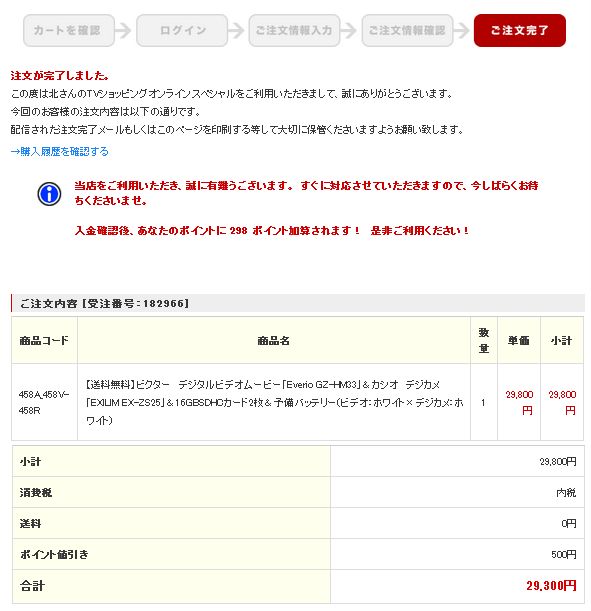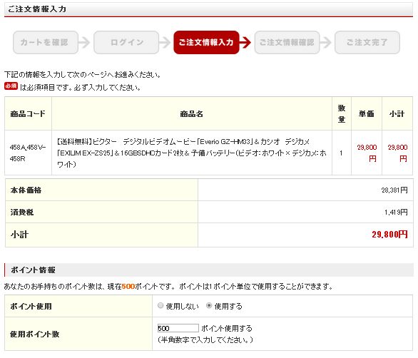 ※29800円は消費税込みの値段です。会員登録時に付いたポイント利用はこのあと指定します。ポイント利用はまだですので、心配しないでくださいね。